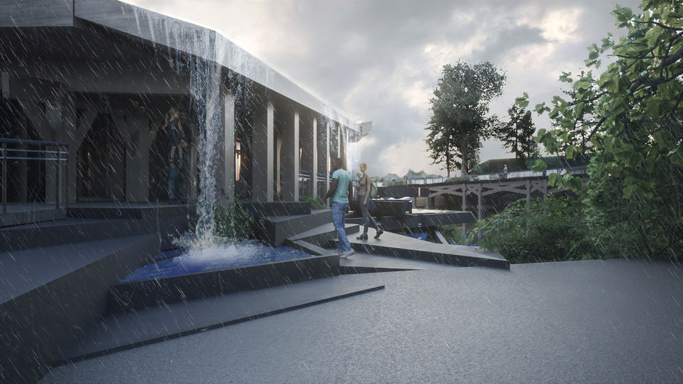 The design is centered around water collection, redirection and retention, while still providing the amenities needed for a community wishing to experience and enjoy the Sunshine Coast.